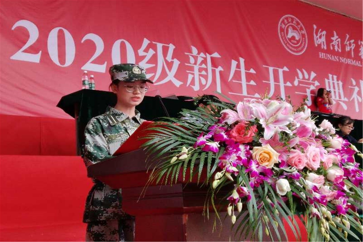我院2020级护理专业新生李欣珂作为学生代表在军训动员大会上发言。她结合自身实际讲述了今年高考不平凡的历程和勇于挑战困难的积极心态。谈到专业选择,她表示自己被本次抗击疫情中医务人员舍我为人、不畏艰苦的精神所激励,毅然改变了原有的职业理想,选择成为一名“白衣天使”。另外,为了帮助同学们更好的适应军训生活,她提出了三点建议:一是遵守纪律,听从指挥;二是端正态度,艰苦训练;三是虚心学习,互相帮助。