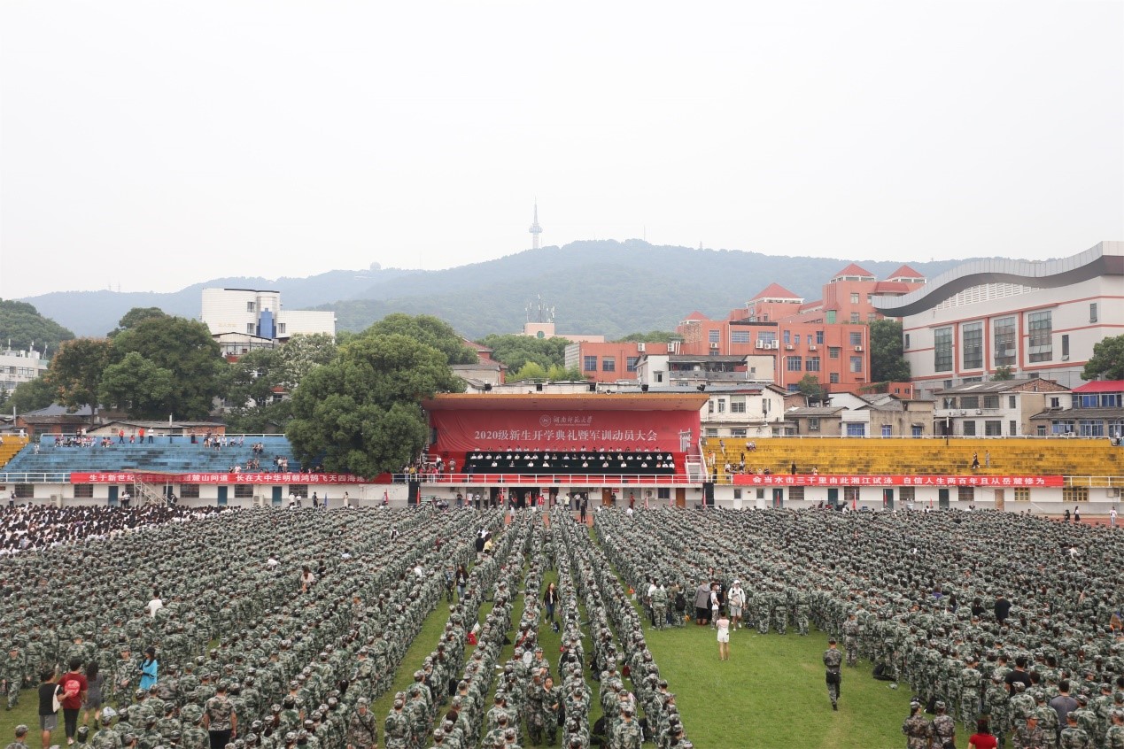 9月13日上午,学校2020级新生开学典礼暨军训动员大会于校本部体育场举行。全体校领导、教师代表、学校相关职能部门和各学院负责人在主席台就坐。党委书记蒋洪新主持开学典礼。