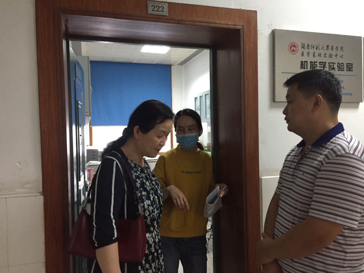 9月29日上午,我院实验室安全领导小组对学院至谨楼、至真楼、仁医楼等实验室进行了安全检查,检查由院长何祖平带队,副院长张坚松、邓文艳、院长助理叶湘漓及其它相关人员参与了检查活动。