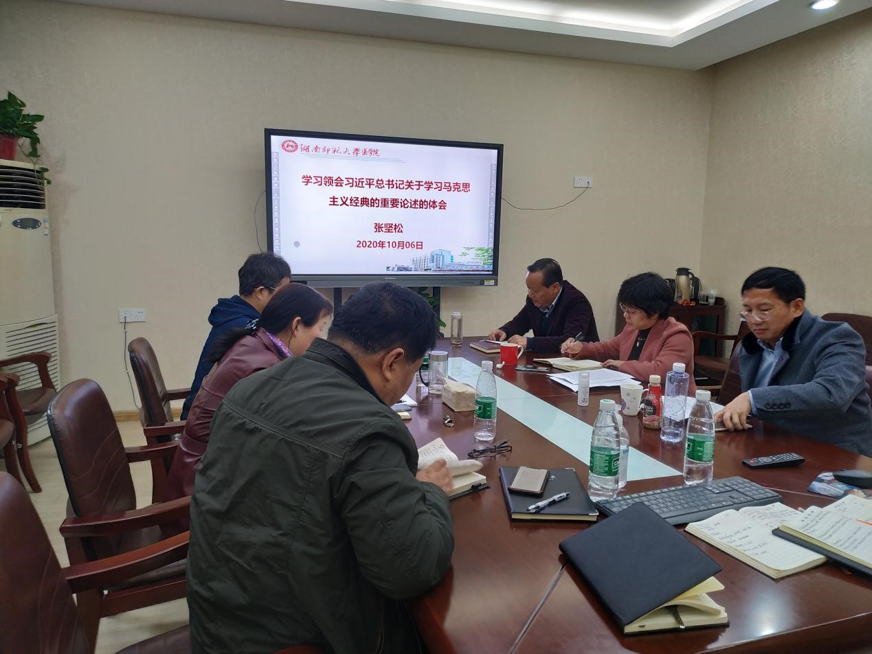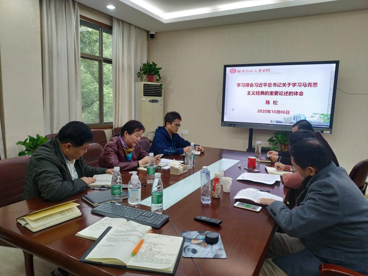 与会人员认真学习了习近平总书记关于学习马克思主义经典的重要论述,副书记陈松结合本次的学习主题作了《深入学习领会习近平总书记关于学习马克思主义经典的重要论述》的主题发言。他表示,通过今天的交流,对马克思主义有了更深的领会,对习近平总书记的重要论述也有了更深的了解。在今后的生活中要继续加强对马克思主义的学习和领悟,坚定理想信念,坚守共产党人的精神追求,不忘曾经在党旗下的誓言。