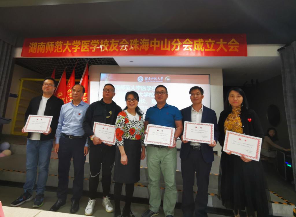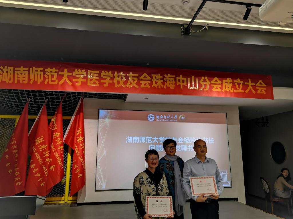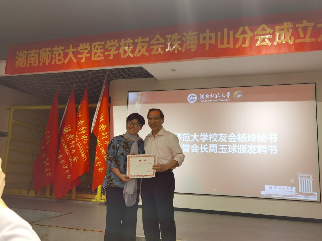 会上,杨玲宣读了《关于成立湖南师大医学校友会珠海-中山分会的批复》。大会审议通过了《英国365集团英国365集团医学校友会珠海-中山分会章程》和分会组织机构、理事人选建议名单。匡乐满和瞿树林向医学校友会珠海-中山分会授会旗,我校医学校友会副会长谭伟宣布了此前成立的医学分会、长沙和广州校友会更名的决定。杨玲、鄢朝晖、谭伟等为医学校友会珠海-中山分会理事会成员颁发聘书。