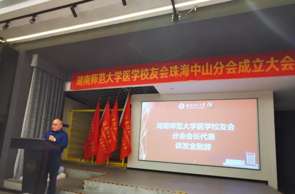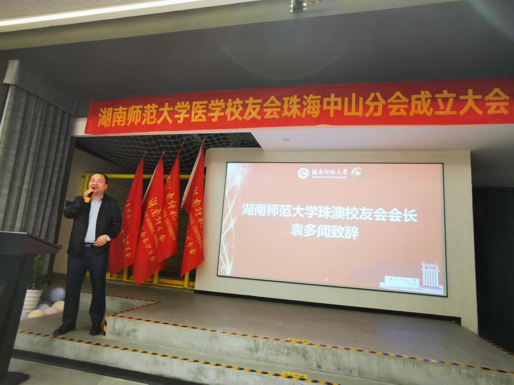 我校珠澳校友会会长袁多闻先生和医学校友会长沙分会会长谈发金先生分别致辞,向珠海-中山分会的成立表示祝贺,一致表示各兄弟校友会都肩负着秉承传统、团结校友,助力母校发展的职责。大会还收到了正在筹备中的医学校友会张家界分会的贺电。