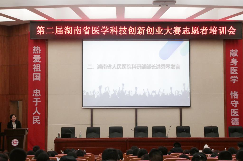 12月2日晚,我院于学术报告厅举行志愿者培训会。湖南省人民医院科研部部长洪秀琴、我院党委书记鄢朝晖、学工办主任张晓红及全体辅导员出席此次大会,所有学生志愿者参加此次大会。