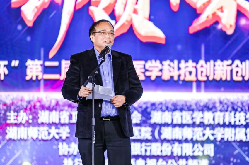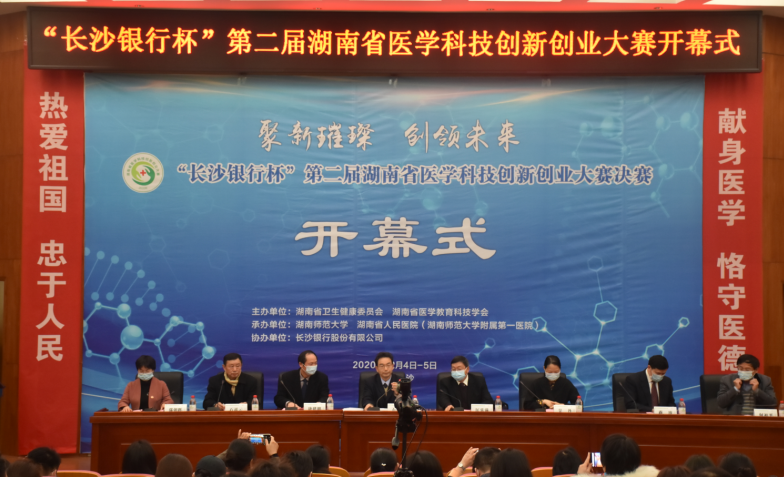 2020年12月5日上午,由湖南省卫生健康委员会、湖南省医学教育科技学会主办,英国365集团和湖南省人民医院(英国365集团附属第一医院)联合承办、长沙银行协办的第二届湖南省医学科技创新创业大赛决赛在我院开幕。开幕式由省卫生健康委员会科教处处长石国勇主持,湖南省人民医院(英国365集团附属第一医院)党委书记唐建明致辞,副校长匡乐满宣布大赛决赛开幕。