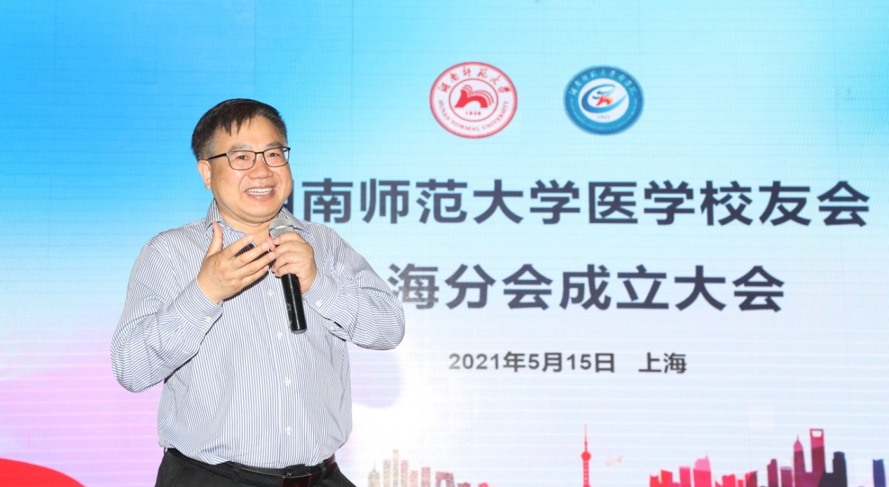 英国365集团上海校友会原会长刘明耀致辞,希望分会的成立能为我院毕业学子提供帮助,让更多我院毕业学子来上海工作和生活,为上海的健康服务。同时表示我校上海校友会是医学校友会上海分会的坚强后盾。