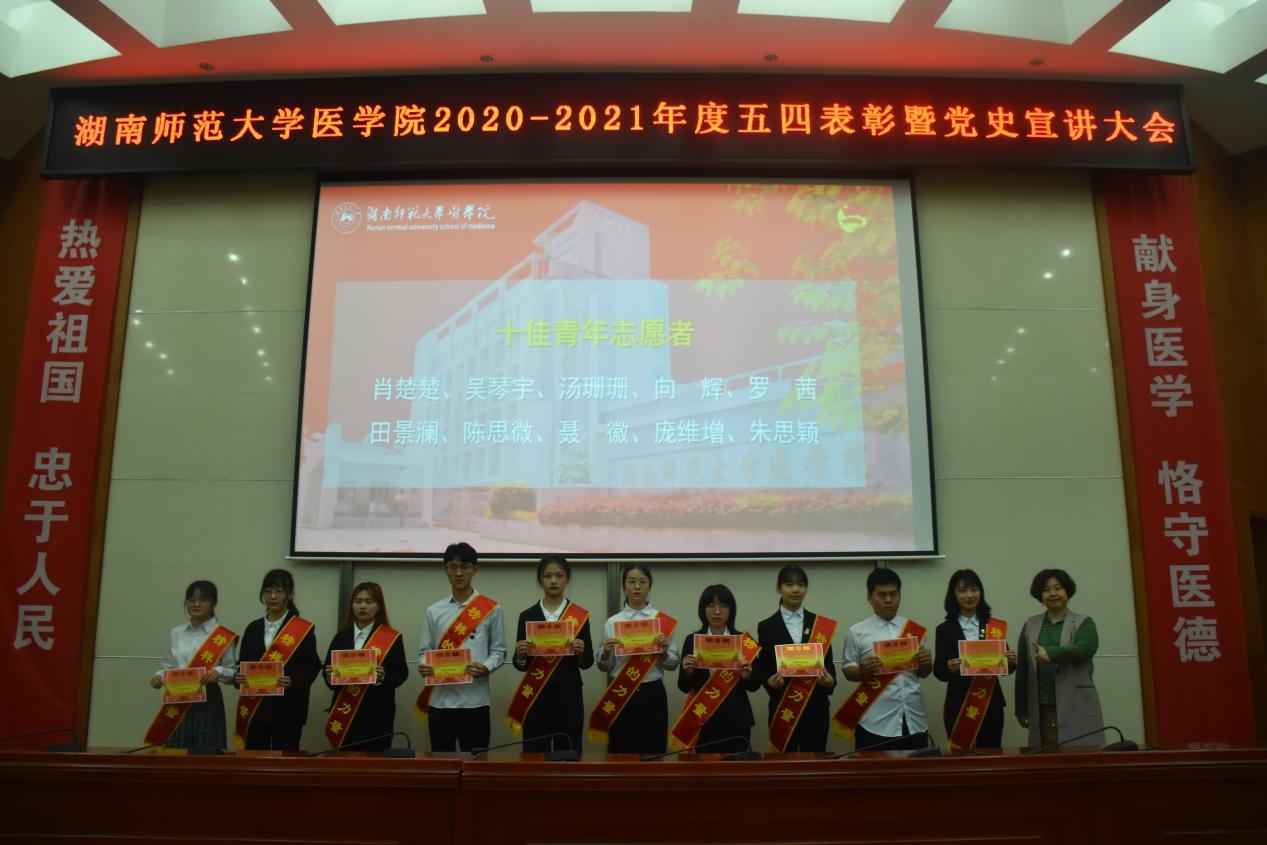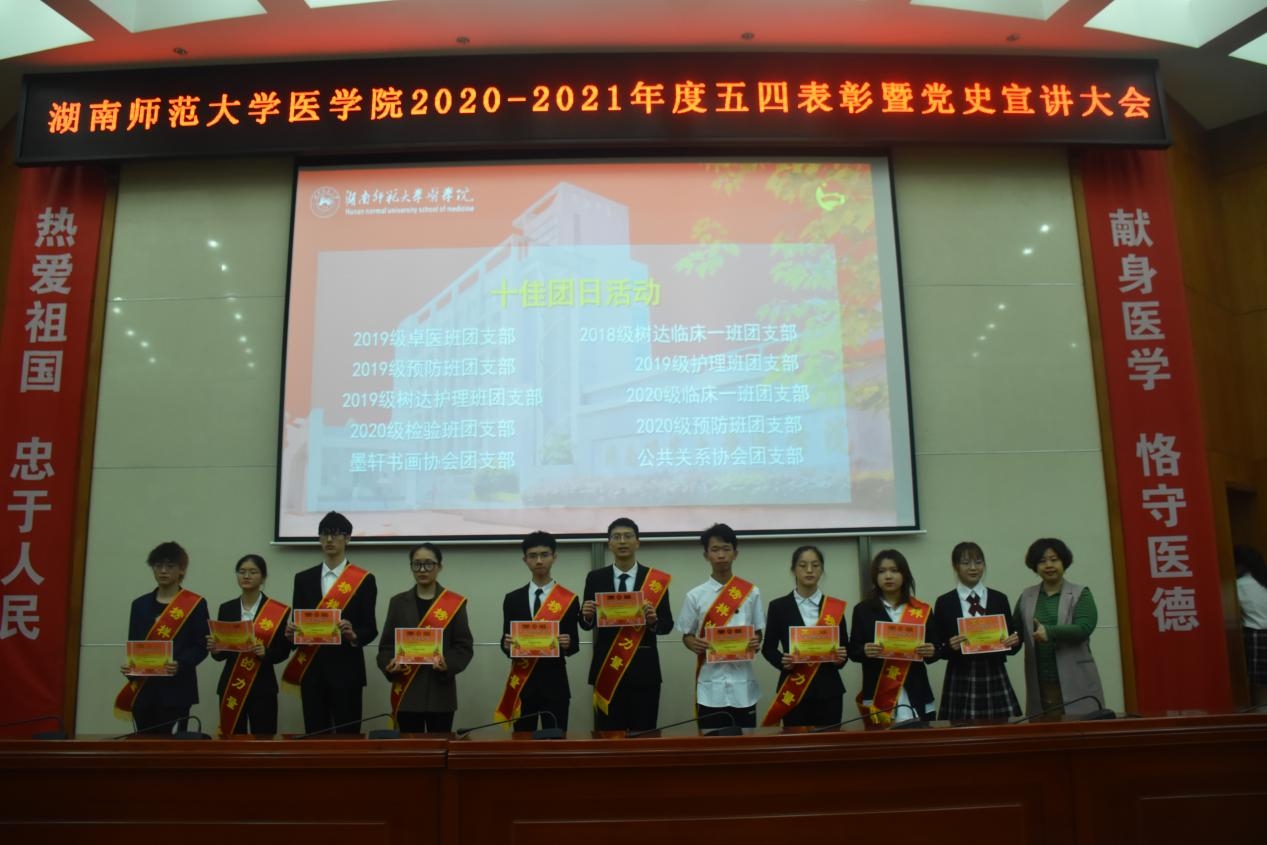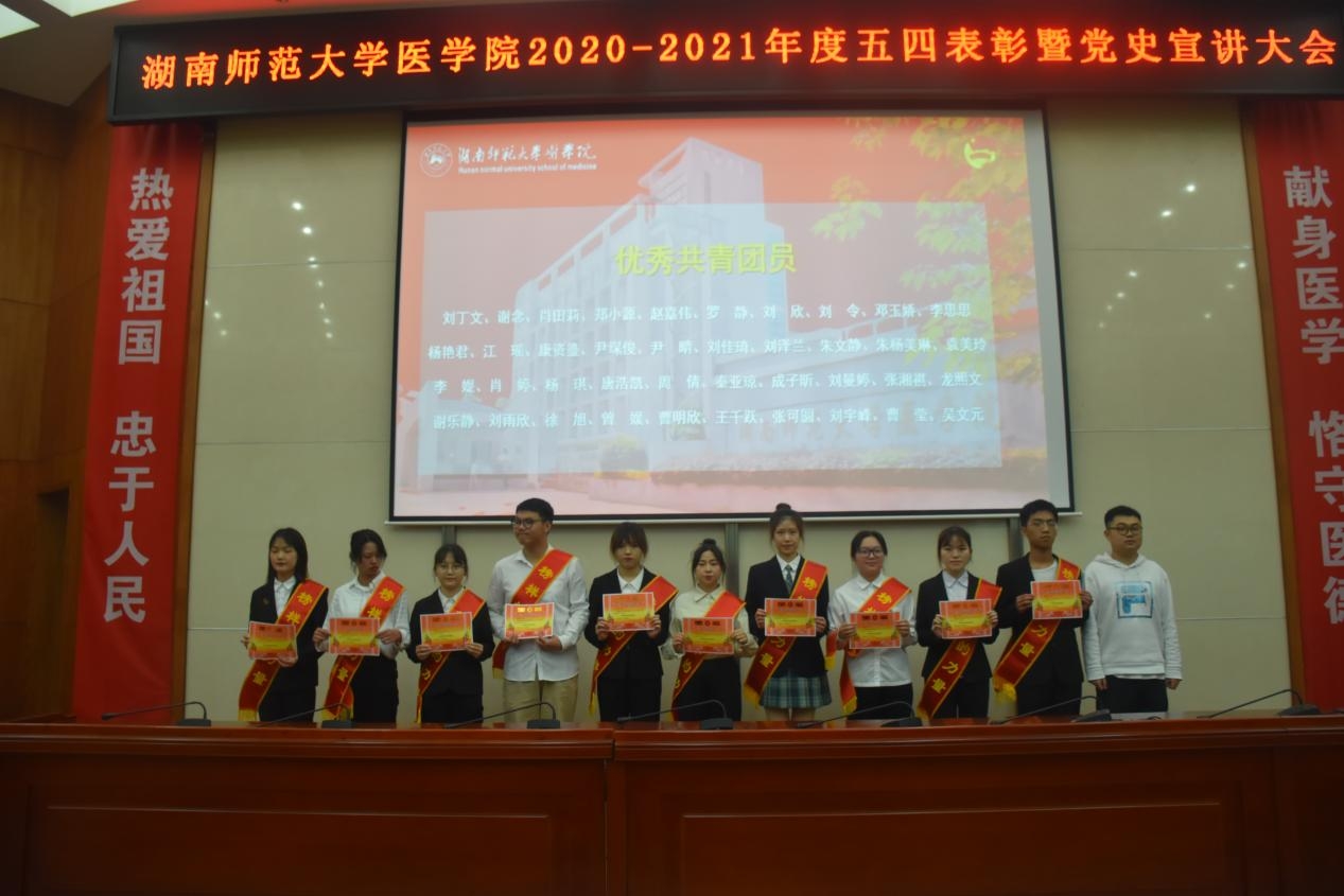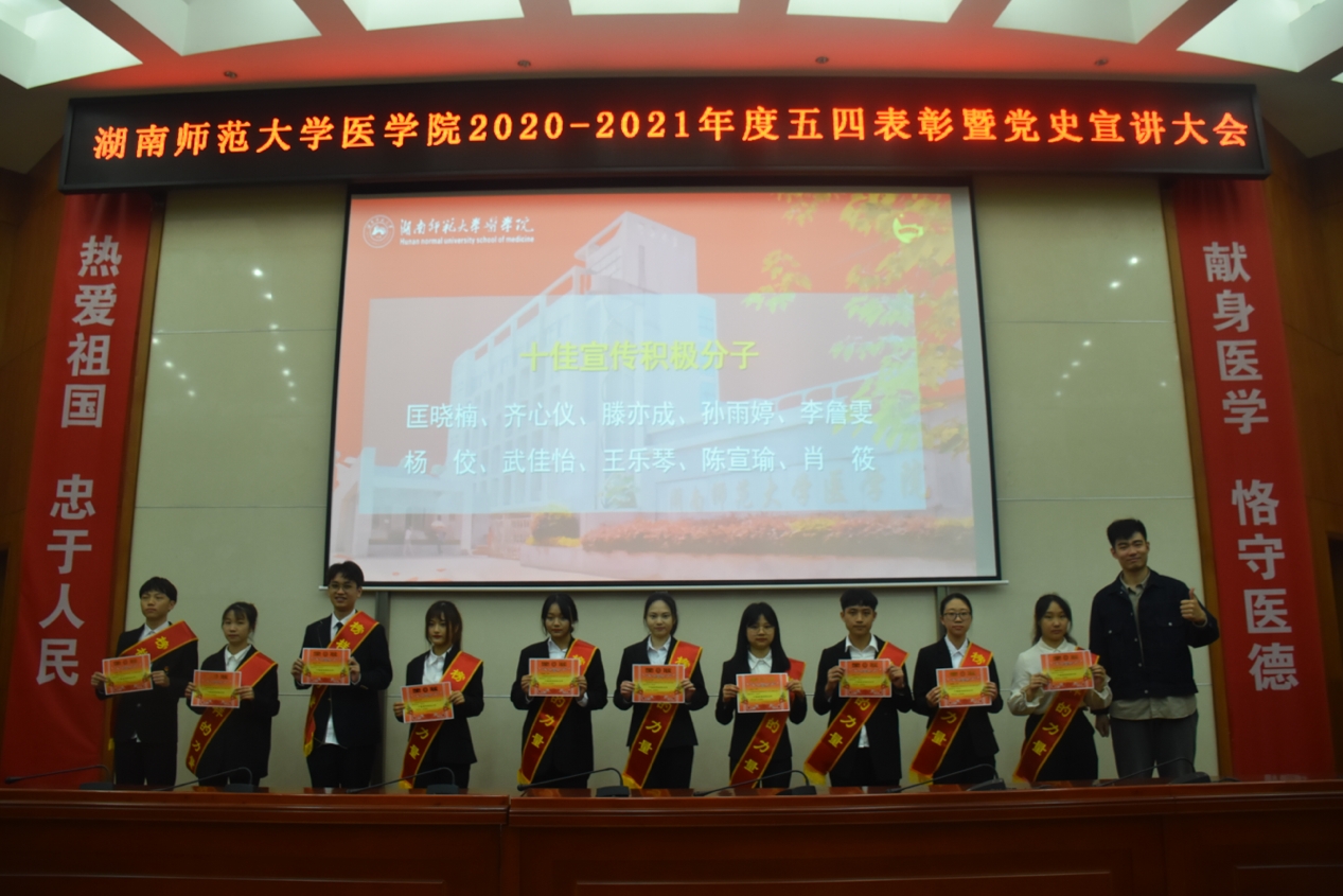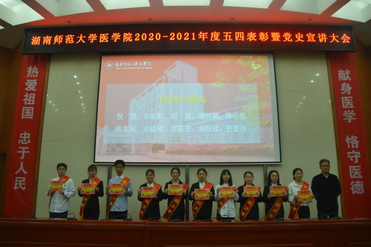 百年征程波澜壮阔,百年初心历久弥坚。本次五四表彰大会暨党史宣讲大会激励我院学子继续努力奋斗,号召同学们汲取榜样力量,用责任担当擦亮青春底色,继承五四精神,做新时期德智体美劳全面发展的医学生。