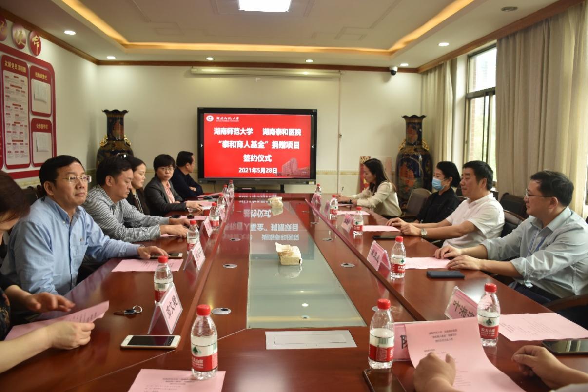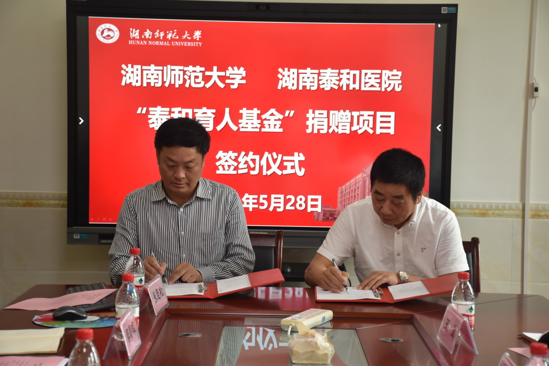 湖南泰和医院在我校设立“泰和育人基金”共计100万元,先设五年,每年捐赠20万元,主要用于奖励当年入校的高考成绩排名靠前的我院各专业优秀新生,奖励金额为10000元/人。本次基金捐赠深化了校企合作关系,为综合性医学人才的培养提供支持,为孵化更多有价值、有潜力的好项目培养更多高素质创新创业人才贡献医学力量。
