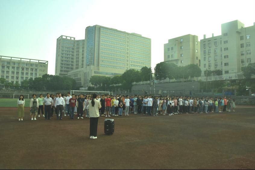5月31日早晨,我院在田径场开展“喜迎建党百年”升旗仪式。20级树达药学班周文妲主持本次升旗仪式。我院院长何祖平,我院党委副书记陈松,学工办主任张晓红,学工办老师张明明、文敏、罗宇涛、郜江洪出席升旗仪式,2020级全体学生参加升旗仪式。