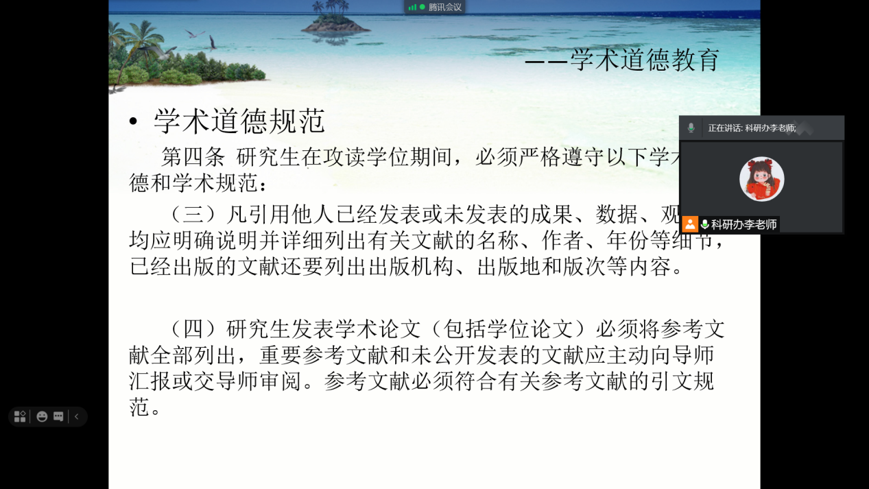 一直以来,我院高度重视学术诚信和学术道德规范的培育。通过开展新生入学教育等形式,鼓励研究生们坚守初心、实事求是、严谨治学,在科研之路上有规矩、有自律,在求真求实的学术之路上越走越好。