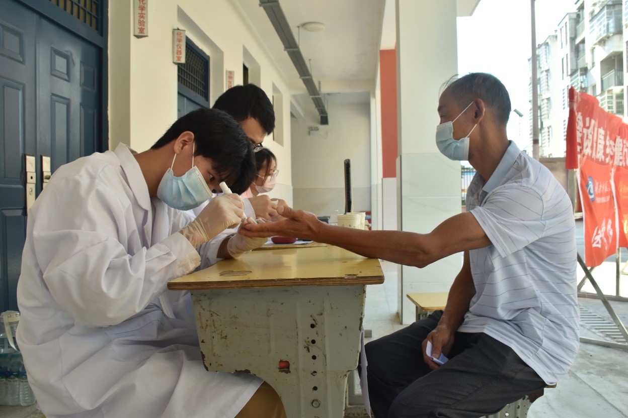 为积极响应国家及卫健委相关政策要求,根据疫情防控工作统一安排,按照自愿原则,大塅镇政府组织开展居民新冠疫苗接种工作。7月22日,我院“天使在人间”暑期社会实践团派出部分实践团成员为居民开展血糖血压测量等义诊服务、推拿服务,维护居民接种后留观等候秩序,积极协助接种工作顺利开展。
