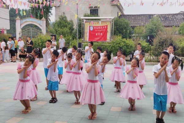 7月27日上午,我院学社管暑期社会实践团于岳阳市平江县瓮江镇仁胜村星之蓝幼儿园举行文艺汇演。瓮江镇教育基金会顾问李秋贵、瓮江镇教育基金会副秘书长范仁义和陈浩章、仁胜村支部书记吴如来、新建村支部书记李武龙、全体学生和家长以及三下乡队伍全体成员观看此次演出。