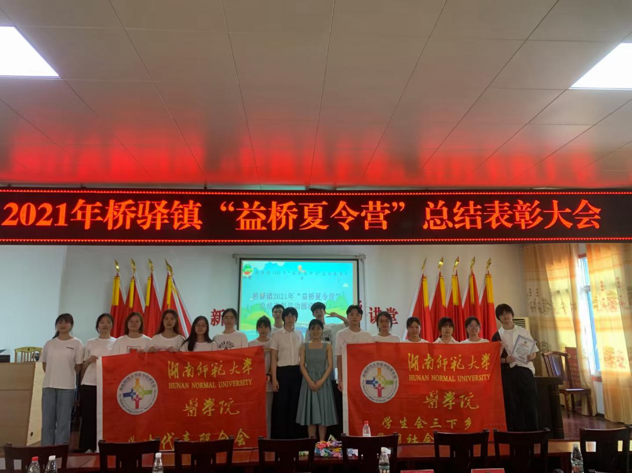7月23日,为总结宣传此次公益培训班的劳动成果,充分发挥志愿者服务引领作用。我院三下乡暑期社会实践团联合长沙市望城区桥驿镇党委政府在桥驿镇综合楼二楼会议室举办了桥驿镇“益桥夏令营”总结表彰大会。镇党委书记毛斌、镇长王卿、副镇长周炎明、周玮、我院学工办辅导员郜江洪出席此次活动。我院学生15人,桥驿镇返乡大学生6人,夏令营所有学员及学员家长参与此次活动。会议由队长刘宇菲、志愿者周露华主持。