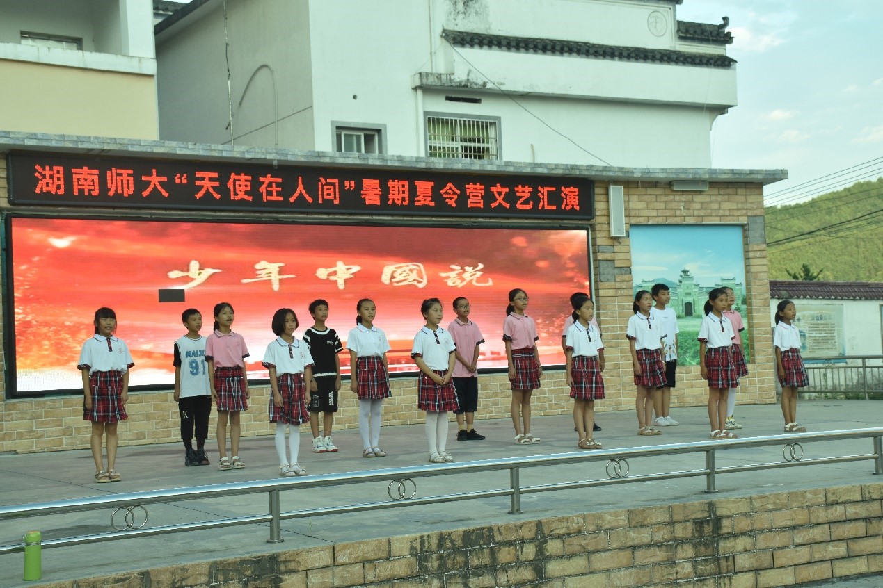 (通讯员 齐心仪)7月27日下午,我院“天使在人间“暑期社会实践团文艺汇演暨夏令营结营仪式于大塅镇中心小学举行。此次结营仪式由实践团副队长蒋秀金、支教组组长陈照宇担任主持人,全体三下乡成员、夏令营营员及其家长参与本次活动。