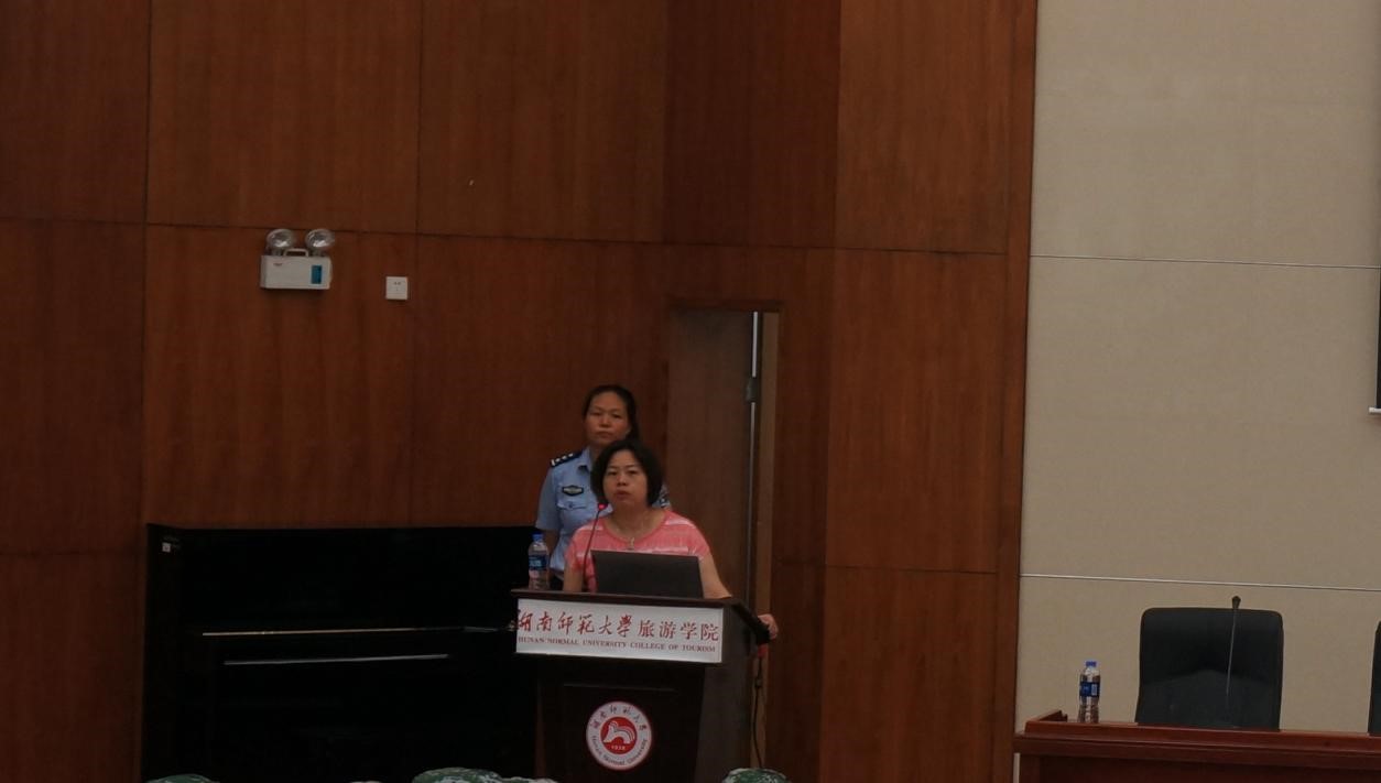 会议伊始,刘豫婷从人身安全,财产安全,消防安全,交通安全几个方面,向大家普及了安全知识。她重点介绍了几种常见诈骗手段,希望同学们提高警惕心。通过一个生动形象的小视频,同学们了解了校园贷的危害。在讲述消防安全时,刘警官通过具体事例向同学们讲述了身边的安全隐患,强调了用电安全,为同学们敲响了安全防范的警钟。