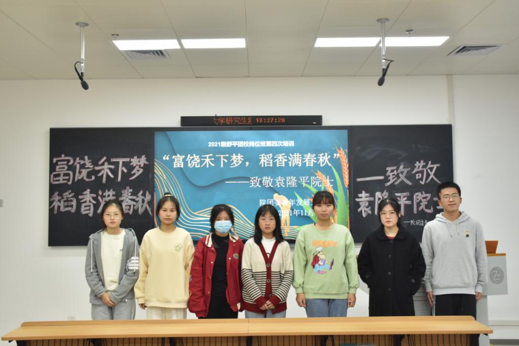 11月19日中午,由我院团委青年发展工作部组织的2021级第一期“富饶禾下梦,稻香满春秋——致敬袁隆平院士”岗位班主题团课在综合楼303教室开展。此次活动由2021级野平团课全体成员以及部门相关负责人参加,21级预防班吴磊主持。