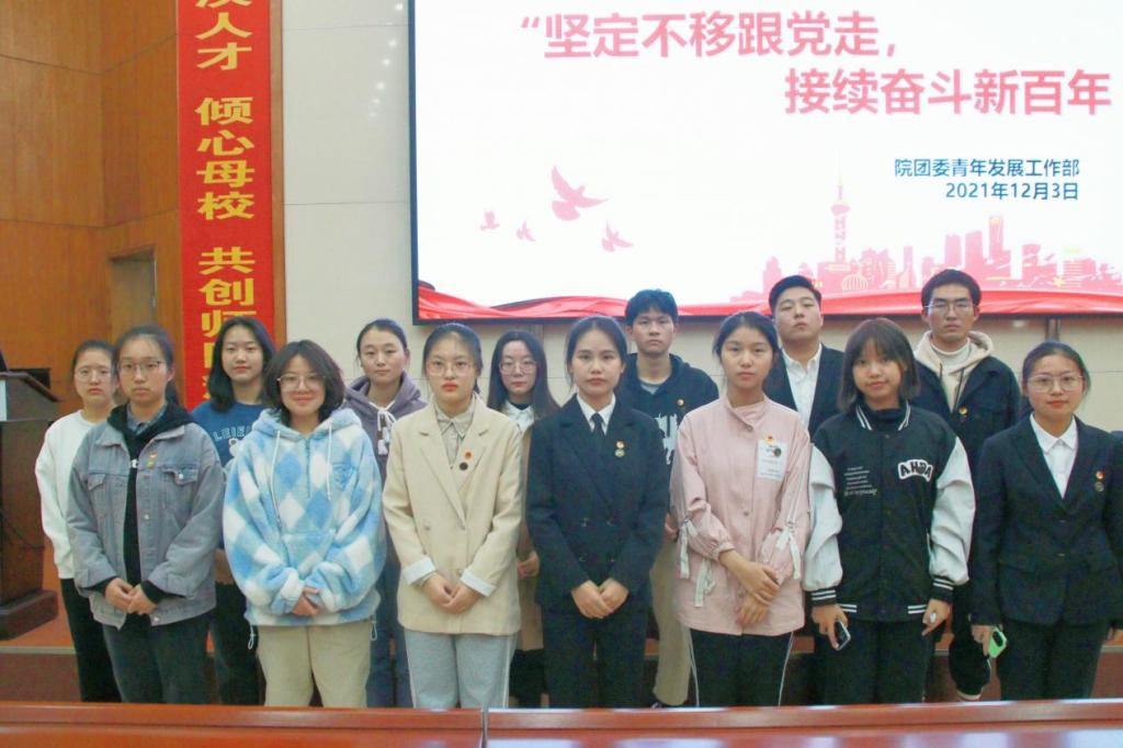 12月3日中午,由我院团委青年发展工作部组织的2021级第一期野平团校“坚定不移跟党走,接续奋斗新百年”主题团课暨结业汇报会于学术报告厅开展。此次活动由青年发展工作部志愿者龙艳萍主持,由各组学员选出的18名汇报人主讲,团校全体学员参加此次活动。
