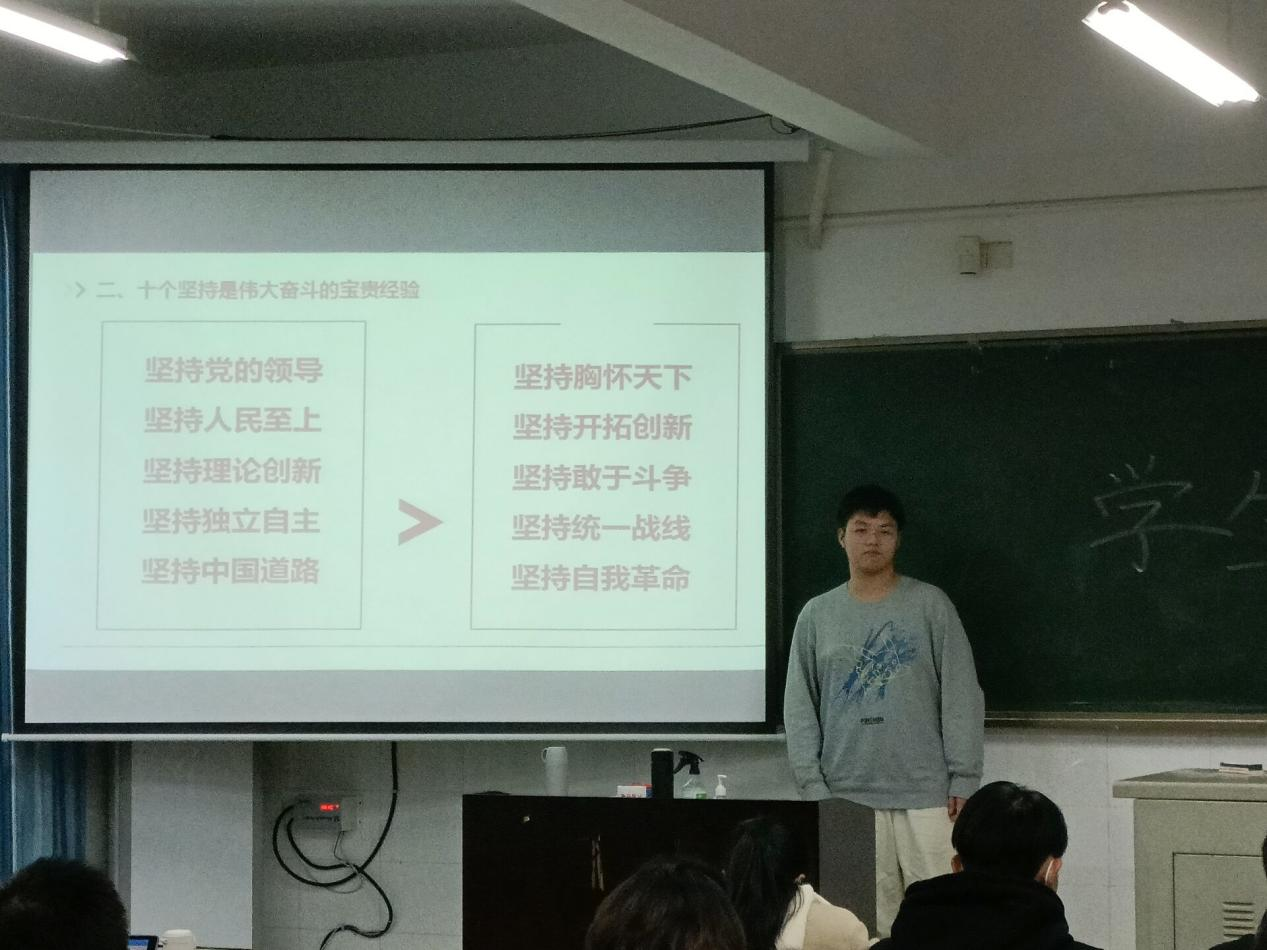 本次学习主要就“党的百年奋斗重大成就和历史意义”“十个坚持是伟大奋斗的历史经验”“全体党员应牢记的根本问题”三个方面进行深入探讨学习。此次学习会旨在呼吁全体同学从小事做起,积极响应党中央的号召,为实现中华民族伟大复兴中国梦奉献自己的力量。