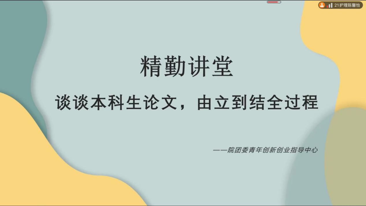 3月25日晚,我院团委青年创新创业指导中心举办了以“谈谈本科生论文由立到结全过程”为主题的讲座,我院部分同学以线上形式参与了此次活动。