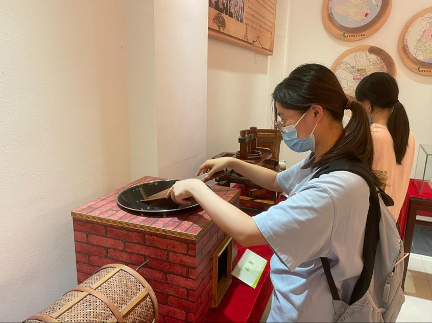 活动开始,我队按顺序进入“飘香全球”“千年茶韵”等展厅了解了茉莉花茶的发展历史、制作工艺和创新产品,并体验了制茶流程。随后,队员们与公司工作人员展开座谈会,讨论了茉莉花茶的弘扬与传播途径、发展方向和战略措施,并提供相关建议。