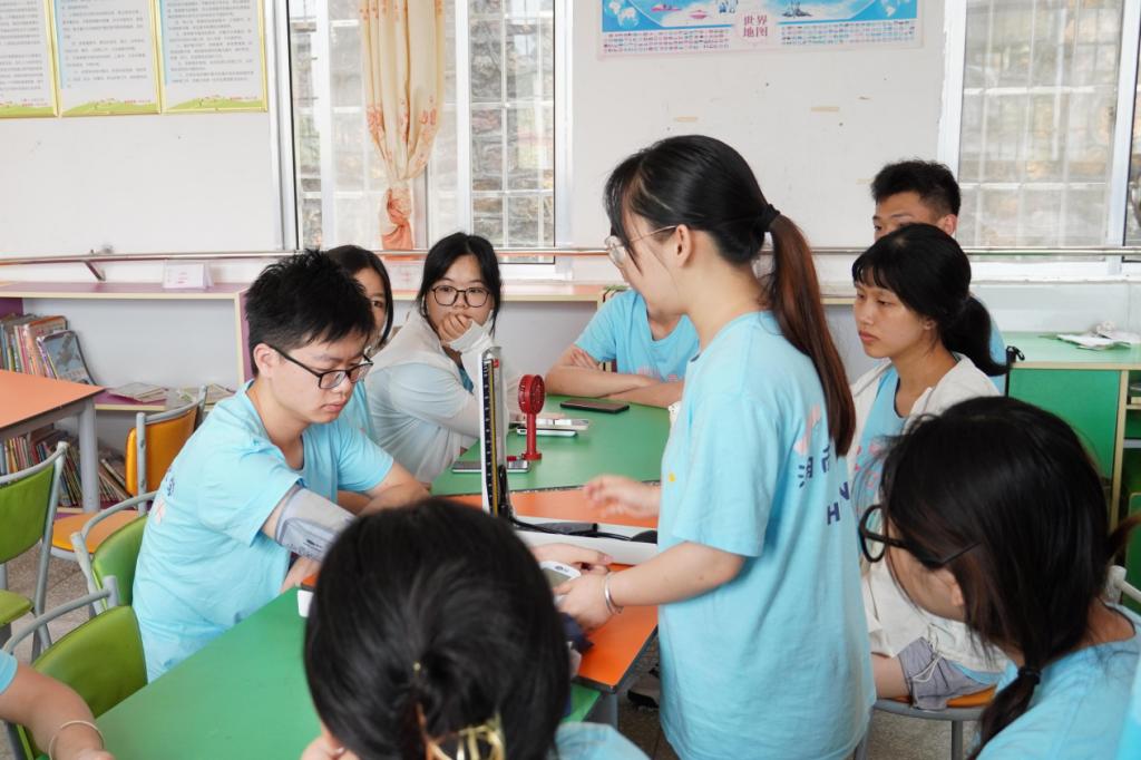 在会议上,健康宣教小组的同学为大家做了必要的健康宣传,包括日常防护、常见疾病的预防、遭遇突发情况的紧急治疗。还教会队员们电子血压计、泵柱血压计以及听诊器的使用、高血压及低血压的区分范围,并介绍了改善高、低血压情况的的生活方式。此外,明天的义诊我们队伍还会为村民们测量血糖、视力、BMI等常规数据并做好记录。队长唐静怡在培训会上强调了明天义诊的注意事项,为明天的义诊活动做好充分的准备工作。