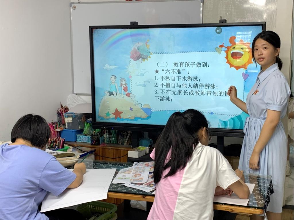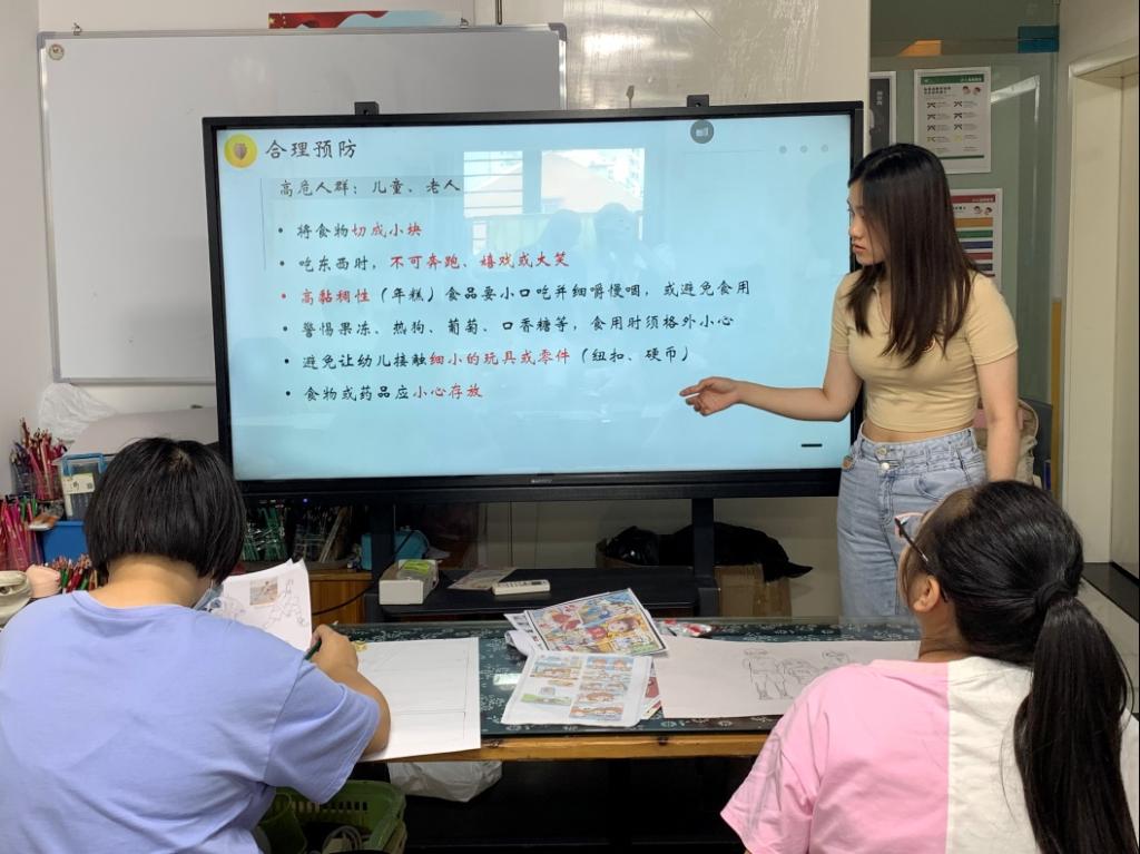 活动期间,队员们将科普内容分为“安全教育 预防溺水”、“烧伤烫伤急救措施”和“海姆立克急救法”三个板块进行讲解,向孩子们介绍了日常生活中较为常见的一系列安全隐患和相应的预防与急救措施,并时刻和孩子互动交流,帮助他们更好的理解所讲内容。