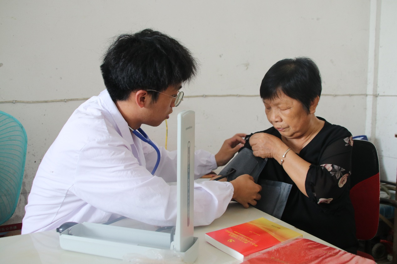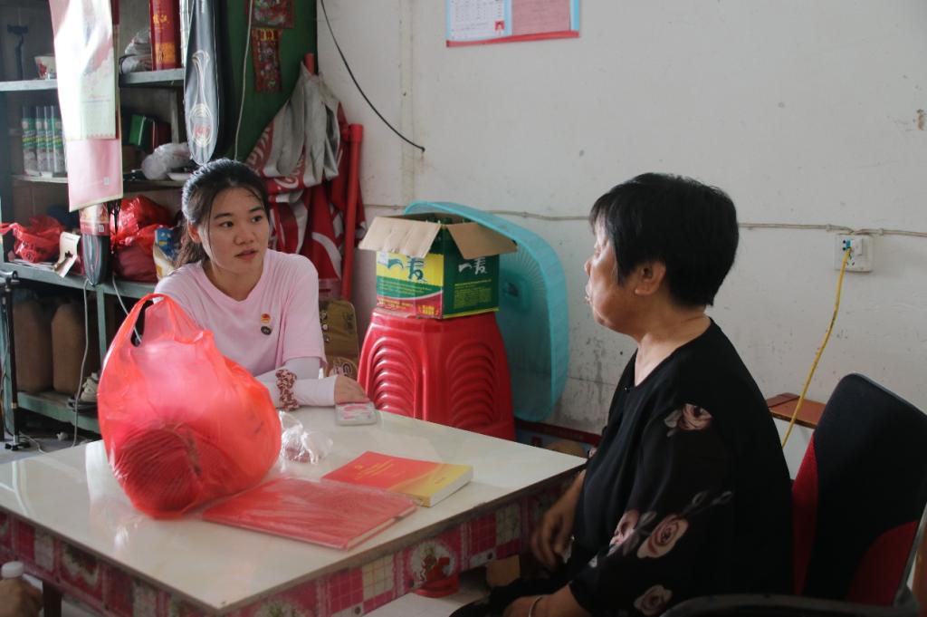 76岁高龄的陈惠芳同志至今党龄已有49年,她数十年如一日,践行初心使命,在工作岗位上为党的事业和大塅镇经济社会发展作出了积极贡献。团队一行人来到陈惠芳家中,为老人带去少许水果和革命书籍表示慰问,并为老人及其家属进行免费的健康咨询。队长黎姿与陈奶奶促膝长谈,一同回顾峥嵘岁月和人生经历,关切询问她的身体和生活状况。陈惠芳与大家分享了成为党员后印象深刻的事件以及入党的初衷。她表示,因为自己有全心全意为人民服务的愿望,加之组织的培养以及群众的监督和信任,所以即便年老也想发挥余热积极奉献,不忘初心,牢记使命。当问及最为感激的人时,她谈到习近平总书记。她回复道,总书记在全国脱贫工作和疫情防控工作做得非常优秀。因为习近平总书记的领导有方,她作为一个中国公民,对此感到非常的骄傲。