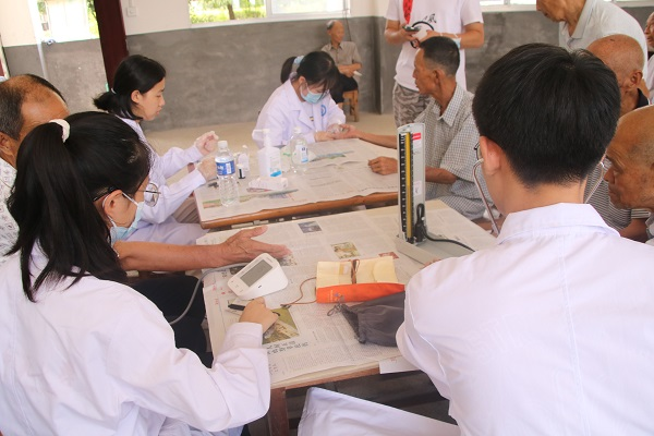 7月18日上午,为考察三墩乡居民的身体健康问题,我院“乡伴童心,乡伴成长”暑期赴平江队伍前往养老院开展义诊活动。队长文梦瑶带领健康专题组和宣传组队员参与此次活动。