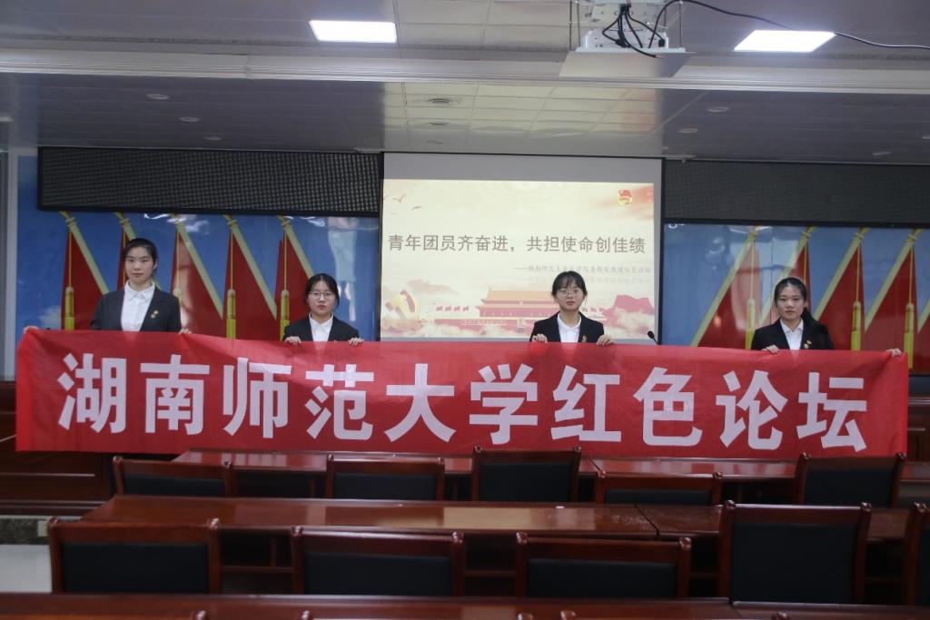 论坛伊始,全体肃立,面向国旗奏唱国歌,成员们用这种简单的方式表达了对党和国家的敬意。团队副队长赵柯洁为红色论坛致开幕辞,她表示中国社会主义青年团是在政治纲领和奋斗目标上与中国共产党保持一致的全国性的先进青年组织。如今,共青团已跨越百年征程,需要用更为蓬勃的青春力量带领青年人永争潮头。章行健引领成员们观看红色视频,使他们对本次主题有了大致了解。随后,高彦、谢乐静、黎姿依次进行主题演讲,分别为听众们进一步讲解了中国社会主义青年团的创立过程和基本概况、基本任务、包括团徽团旗在内的形象标识以及历次代表大会重要思想。章行健对论坛进行简单总结,她强调作为共青团员,我们不仅要在政治上合格、在品行上合格、在作为上合格,更要对党绝对忠诚,自觉践行党的理论和路线方针政策,自觉践行社会主义核心价值观,在青年中发挥模范带头作用,在经济社会发展各项急难险重任务中当好生力军和突击队。
