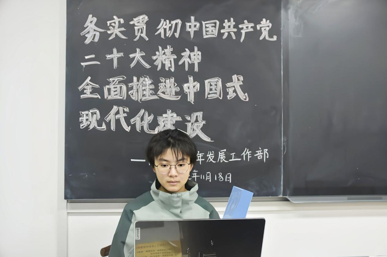 团课开始,何湘湘介绍了此次团课的主题和活动安排。她以中国共产党第二十次全国代表大会报告为引,向大家讲述在中国式现代化建设中青年发挥着不可或缺的作用。随后,易志成和大家一起回顾中国近十年的发展历程,强化了同学们对我国发展现状的认识。他以小见大,以刑法为例,从史实和案例两个方面向大家展现中国式现代化建设的进程及成果,引领同学们领悟和把握党的二十大精神。