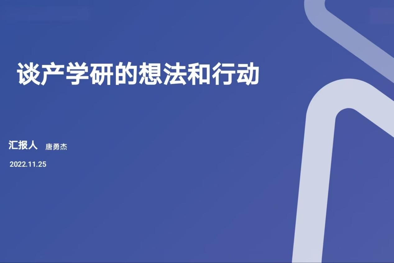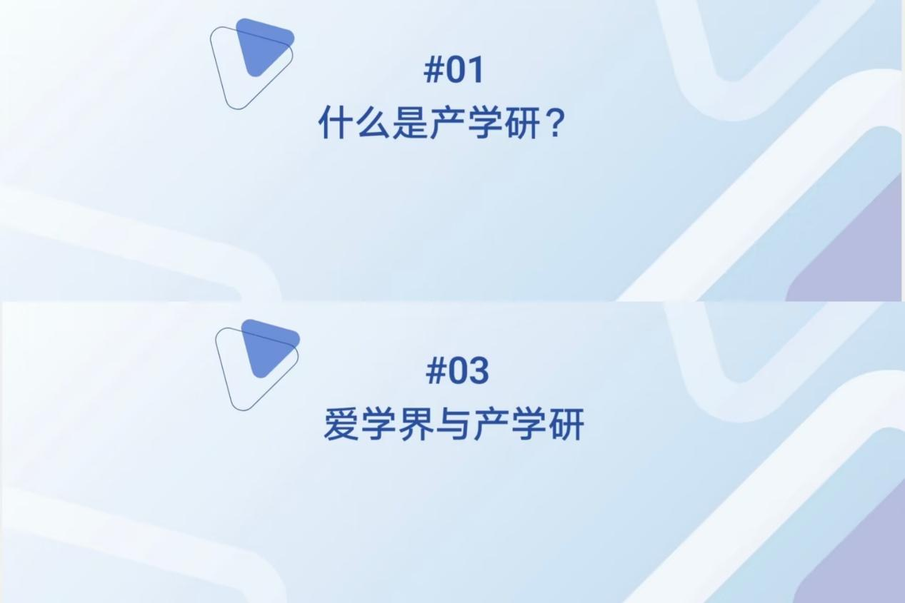 会议开始,刘思睿介绍此次宣讲会的主讲人。唐勇杰借《2020年中国专利调查报告》中的数据说明了我国目前专利实施率和产业化率的现状,进而引出产学研,并详细解释了产学研的含义。他重点讲解了产学研的七种模式及其优势,阐述了爱学界在产学研方面的行动并解答了同学们有关产学研方面的疑惑。