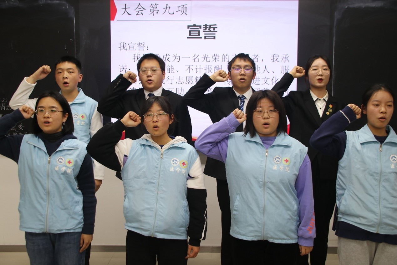 青年志愿者工作部汪庆臻、张浩对部门组成和特色活动进行了简单介绍完毕。优秀志愿者代表熊紫悦分享了她的志愿经历及活动感受,并希望今后和大家共同前行,一起用实际行动见证成长。青春志愿行,奉献新时代,青年志愿者宣誓在马佳曼的带领下告一段落。