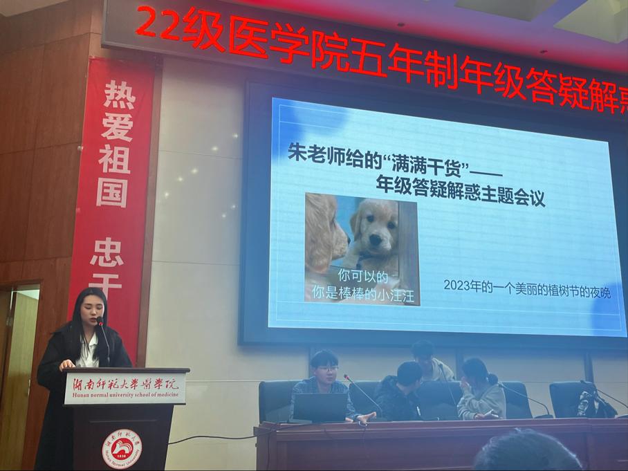 为解答新生同学们关于学业与生活上的疑问,3月12号,我院于仁医楼学术报告厅举办2022年五年制年级答疑解惑大会。五年制辅导员朱天爱,2020级班助齐心仪,丁泽贤,胡子威,唐勇杰出席会议。五年制全体同学参与答疑解惑大会。会议由22级五年制临床四班陈蔚主持。