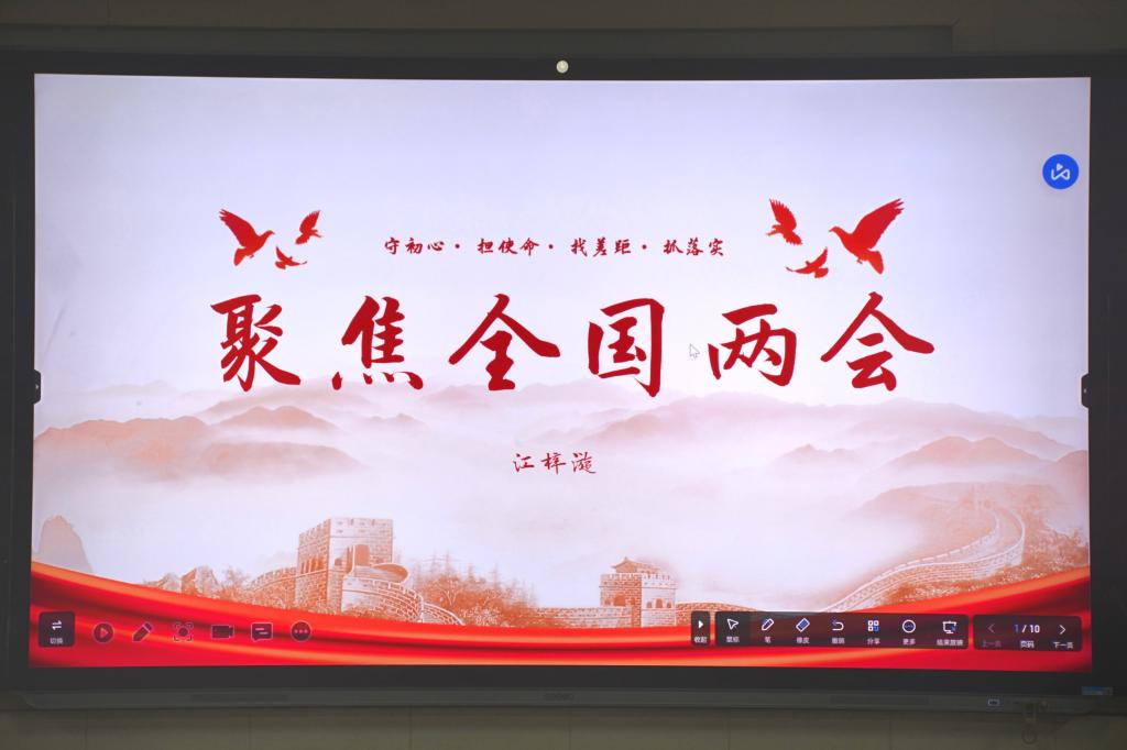 学生会各部门负责人相继汇报了上周工作之后,江梓漩宣布活动开始。此次学习分为三个部分:了解两会内容、学习两会相关报告、学习如何以两会的报告指导学生会发展。成员们在对两会有了初步的认识后,进一步学习了政府的工作报告,在报告中了解到了我国发展的新成就和发展的趋势,引发了自身关于学生会发展的思考。最后,主持人鼓舞全体成员不忘初心,牢记党的使命,坚定不移地跟党走,努力成为合格的社会主义建设者和接班人。