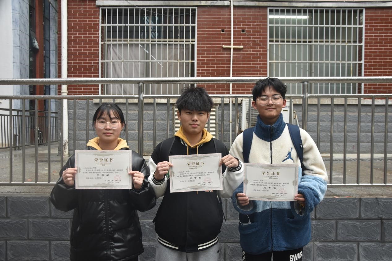 3月17日中午,我院学生会权益维护部在食堂前坪举行“变废为宝,力行维权”颁奖活动,权益维护部志愿者和活动获奖人员到场。