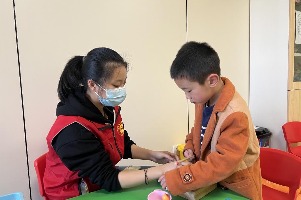 院团委青年志愿者工作部提前招募三名志愿者参与志愿服务。志愿者经过培训事先了解服务自闭症患者时的的注意事项以及医院中孩子们的基本情况,以便让志愿者们熟练掌握陪伴技巧。活动过程中,志愿者与孩子们肩并肩在一起,共同完成了绘画、DIY、搭积木等活动,细心关爱孤独症孩子,传递温暖。他们通过与孩子们交流、学习和玩耍,志愿者们既传递了爱心,也收获了孩子们天真烂漫的笑脸。