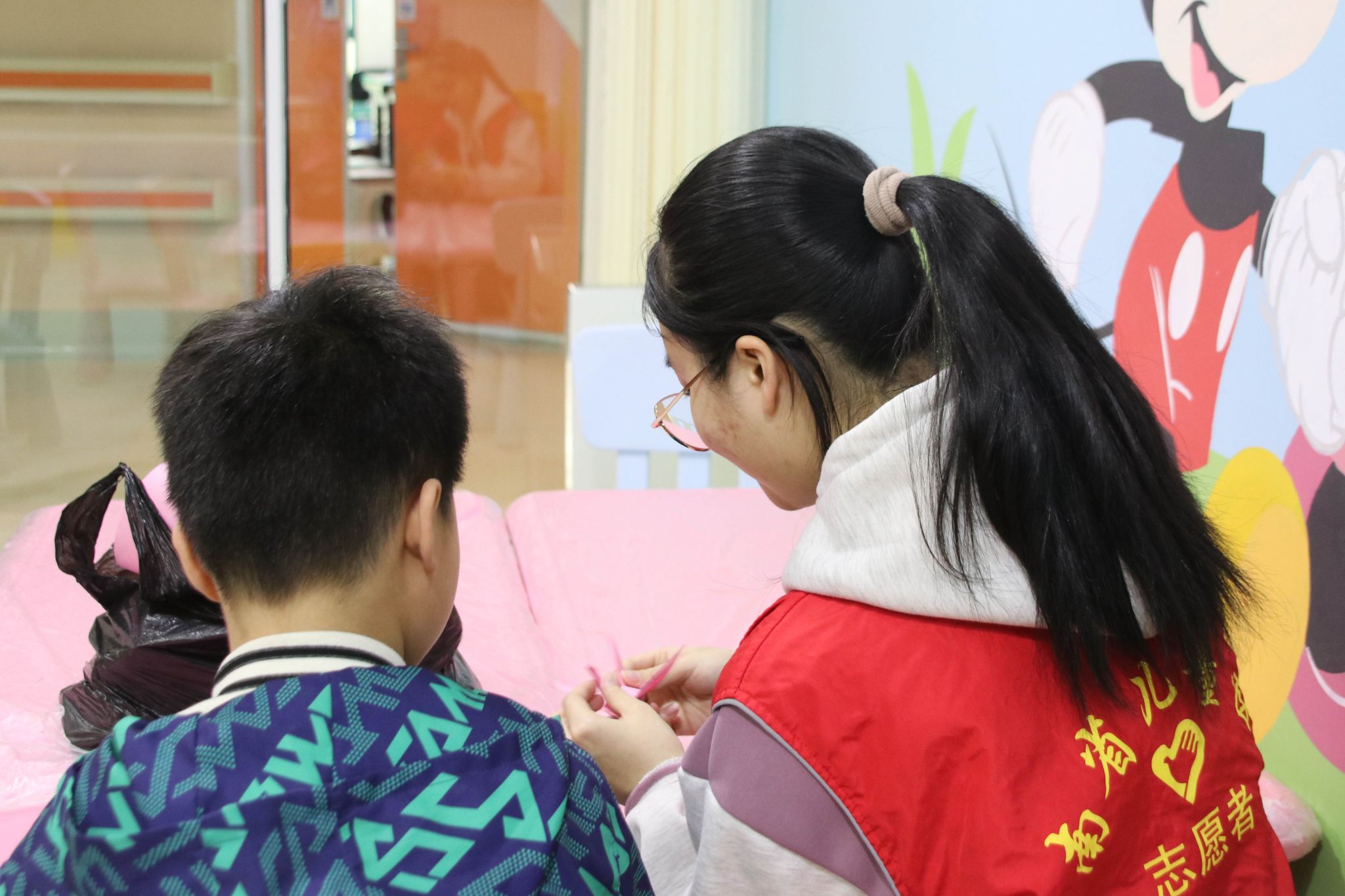 为陪伴在住院期间缺乏关爱的患病儿童们,4月10日下午,由我院团委青年志愿者工作部主办的“花开笑声甜,医路伴童颜”志愿活动在湖南省儿童医院迪士尼小屋开展,我院两名志愿者参与了此次活动。