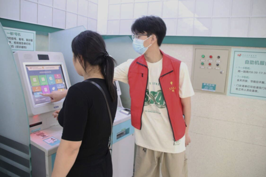 医院门诊量的增大,使各个检查科室排队等候的患者居高不下。陌生的环境,先进的排号设备,让一些初次就诊的患者及家属无从下手。为缓解医院门诊导诊压力,防止就诊人员聚集,帮助患者更快捷、准确完成挂号就医,志愿者们走到患者中去主动服务,解决他们在就诊中遇到的“困难”,用实际行动为患者排忧解难。走动服务,讲解就诊流程,引导患者正确就诊,协助患者收费挂号、打印化验、检验单等,为不熟悉医院环境的患者指引方向,必要时全程陪诊。