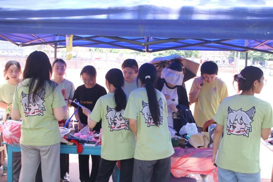 27、28日两天进行摆摊售卖。志愿者们将市场分为六个区域,安排人员对物品进行清点、与感兴趣的同学进行沟通交流和记录收支,以确保同学们的利益不受损。
