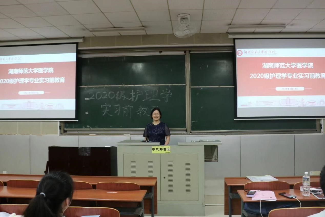 省人民医院护理教研室主任陶美伊介绍了湖南省人民医院的主要情况,重点强调了一名优秀的实习生所应当具有的品质。