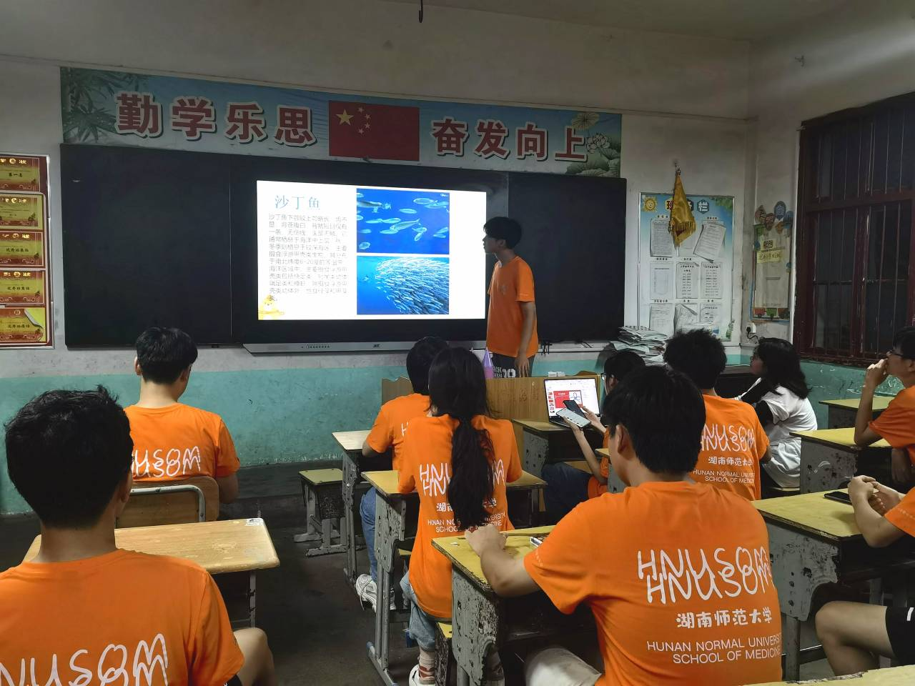 本次支教课表由支教组的队员们安排,包括街舞课、海洋生物科普课、趣味手工课、书法课、趣味体育课、课桌舞等常规课程,以及带有医学院特色的趣味人体解剖课、生化小实验和太极拳。在试讲过程中,主讲人利用课件、视频和自身展示等形式进行讲课,评课成员们做了记录并就课堂效果、讲课流程、师生互动等方面提出了自己的建议,所有成员均参与了此次试教。