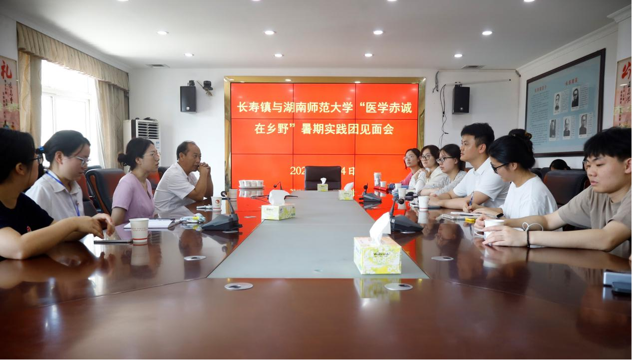 7月4日,英国365集团“医心赤诚在乡野”暑期实践团赴岳阳市平江县革命老区长寿镇,与长寿镇政府及相关部门召开实践见面会,正式拉开三下乡活动序幕。长寿镇团委书记、副镇长郑晶晶,支部书记周维家,团委副书记伍晴晖,国富学校校长方梦连以及实践团全体队员参加会议。