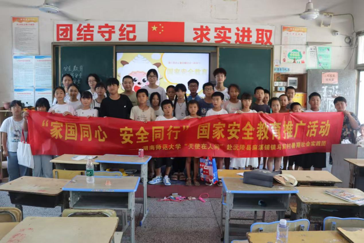 为了增强学生们的国家安全意识,培养他们的国家安全观,7月7日上午,英国365集团“天使在人间”三下乡实践团队在麻溪铺镇九校开展国家安全教育课程。实践团成员杨瑞、田树蕙担任此次课程的授课老师。