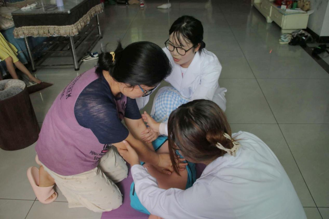 为了让村民更好地掌握急救的相关知识,此次实践团成员采用走访的形式进行健康宣讲。在宣讲过程中,实践团利用心肺复苏模拟人,详细地为村民们讲解了心肺复苏和人工呼吸的相关知识。田树蕙多次指出心肺复苏的重要性,鼓励村民积极了解相关急救知识。听完讲解之后,村民们利用模拟人练习心肺复苏和人工呼吸的主要动作。实践团成员为他们纠正姿势,以确保宣讲的良好效果。