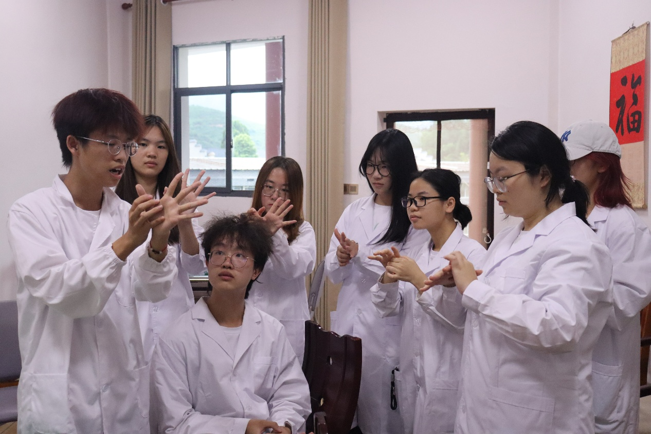 此次培训主要围绕常见病症急救穴位,以及穴位按压和拍打等相关方法展开。每个病症都结合中医理论解释了穴位的作用原理和定位方法,帮助成员准确识别穴位。杨瑞同时示范了正确的拍打姿势和力度控制要点,以便在后续社会实践中为村民提供更专业的健康服务。