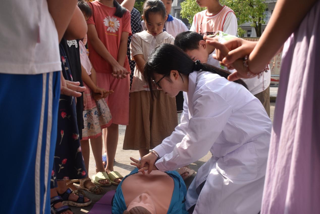 值得关注的是,活动特别设置了心肺复苏实操环节。实践团成员结合专业知识,现场演示了胸外按压、人工呼吸的标准动作,并组织孩子们分组练习,一对一纠正动作细节,确保孩子们掌握基本急救技能。