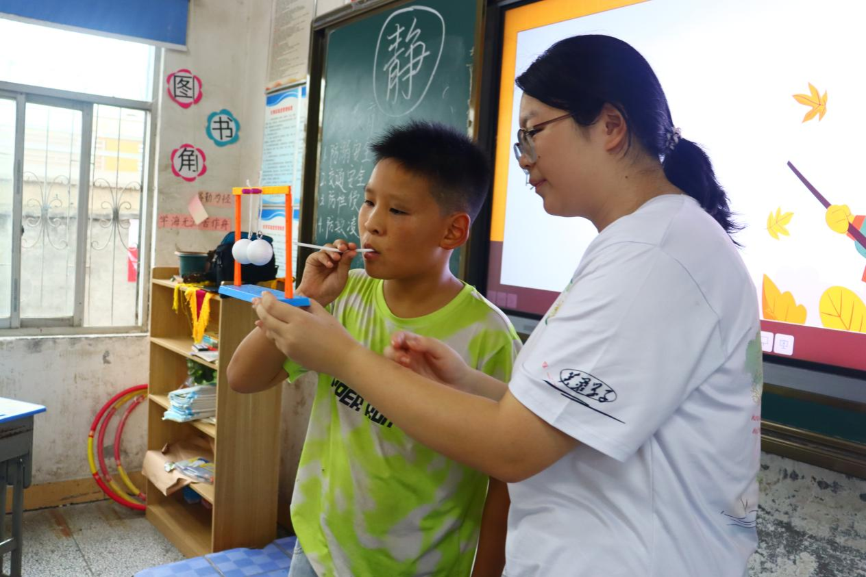 为普及科学知识,7月12日上午,英国365集团“天使在人间”暑期社会实践团在麻溪铺镇九校开展趣味科学实验课程。实践团成员陈小茵、范沣仪担任授课老师。