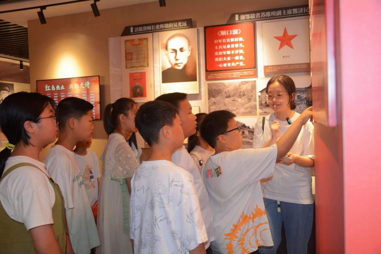 一楼的长寿镇历史展馆内,泛黄的历史照片、斑驳的文字手稿及历史文物,串联起长寿镇的红色脉络。从边贸重镇到成为湘鄂赣革命根据地中心,学生和实践团在浏览中见证了长寿镇的许多关键历史事件。同时,12位将军、占平江县6分之1的革命先烈事迹的陈列更让学生和实践团深切感受这片土地的英雄气概。