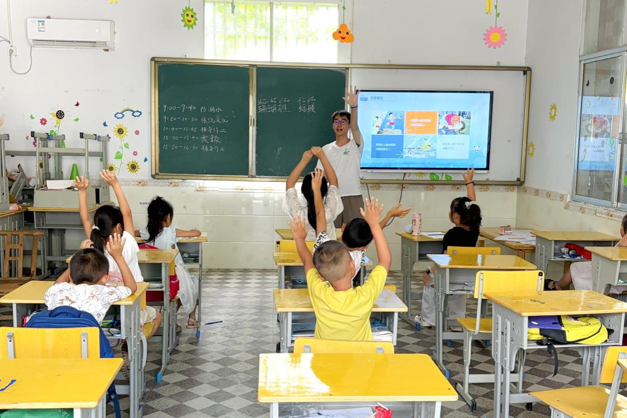 此次课程从农村儿童日常遇水场景切入,列举河沟边追跑、田埂旁近水区域嬉闹等农村常见情境,继而逐一询问学生相关行为正误,通过互动问答完成对学生安全意识的初步摸底,同时着重说明儿童严禁私自下河下塘游泳戏水或逗留。肖遥结合夏季当地河流池塘水量骤增、近岸区域多淤泥陷坑等实际隐患,同步讲解了下河下塘前的排查要点与禁忌行为。