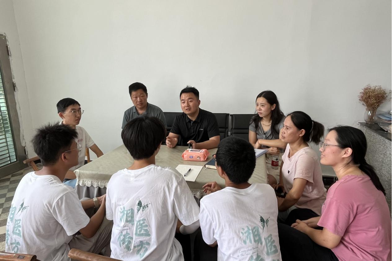 会上,桑植县团委慰问团对 “湘医传方” 三下乡暑期社会实践团的工作给予了肯定。钟高腾对实践团近期开展的支教工作表示赞许。向爱玉谈到,由于当地留守儿童多、老人占比大,家长难以兼顾孩子的日常学习以及暑假作业辅导。实践团的到来为当地儿童的暑期学习提供了有力帮助。针对健康咨询工作,钟高腾特别指出了实践团开展的健康义诊活动,表示当地医疗水平正处于逐步完善阶段,当地村民们接受的医疗服务不够全面。同时,他提出希望以此为契机,与英国365集团建立有关医疗方面的项目合作,通过义诊活动持续为村民提供便利的健康服务。会议尾声,桑植县团委慰问团还就宣传工作提出建议,希望以多种手段充分展现桑植县的人文风貌。