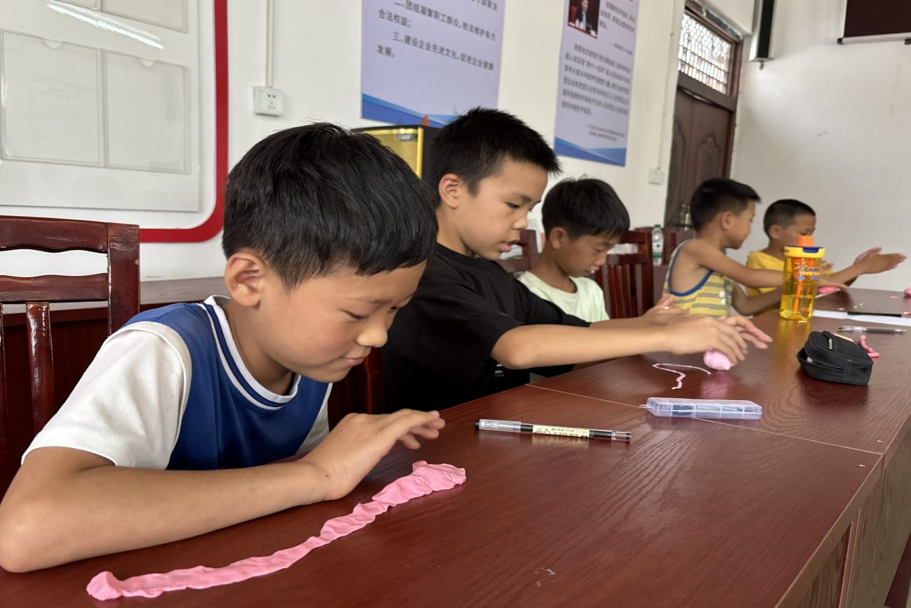 课程内容涵盖绦虫、钩虫、蛲虫等本地高发寄生虫种类。首先,老师通过播放一个视频直观的给孩子们展示常见寄生虫形态及传播途径,同时详细讲解其感染症状与潜在健康危害。随后老师系统传授预防措施:特别强调了饭前便后洗手、不饮用生水、避免赤脚行走于可能受污染的土地等关键行为习惯。为深化理解的同时增加趣味性,两位任课老师采取了现场制作模型的方式,为每位孩子发放了粘土,当众演示了如何制作一条绦虫,让孩子们直观的学习了绦虫的形态。在最后的课堂提问环节,学生们踊跃举手发言,课堂氛围活跃。